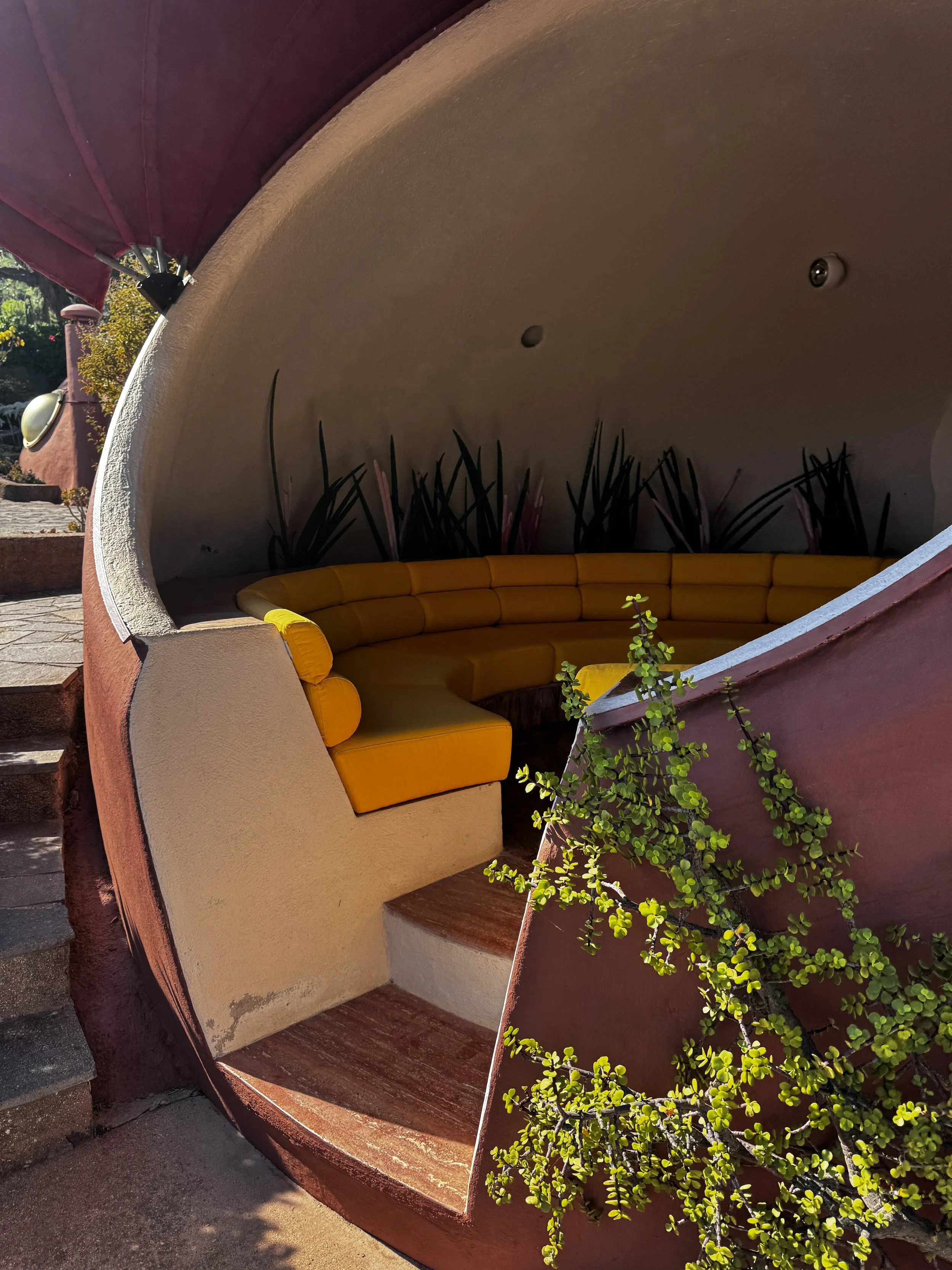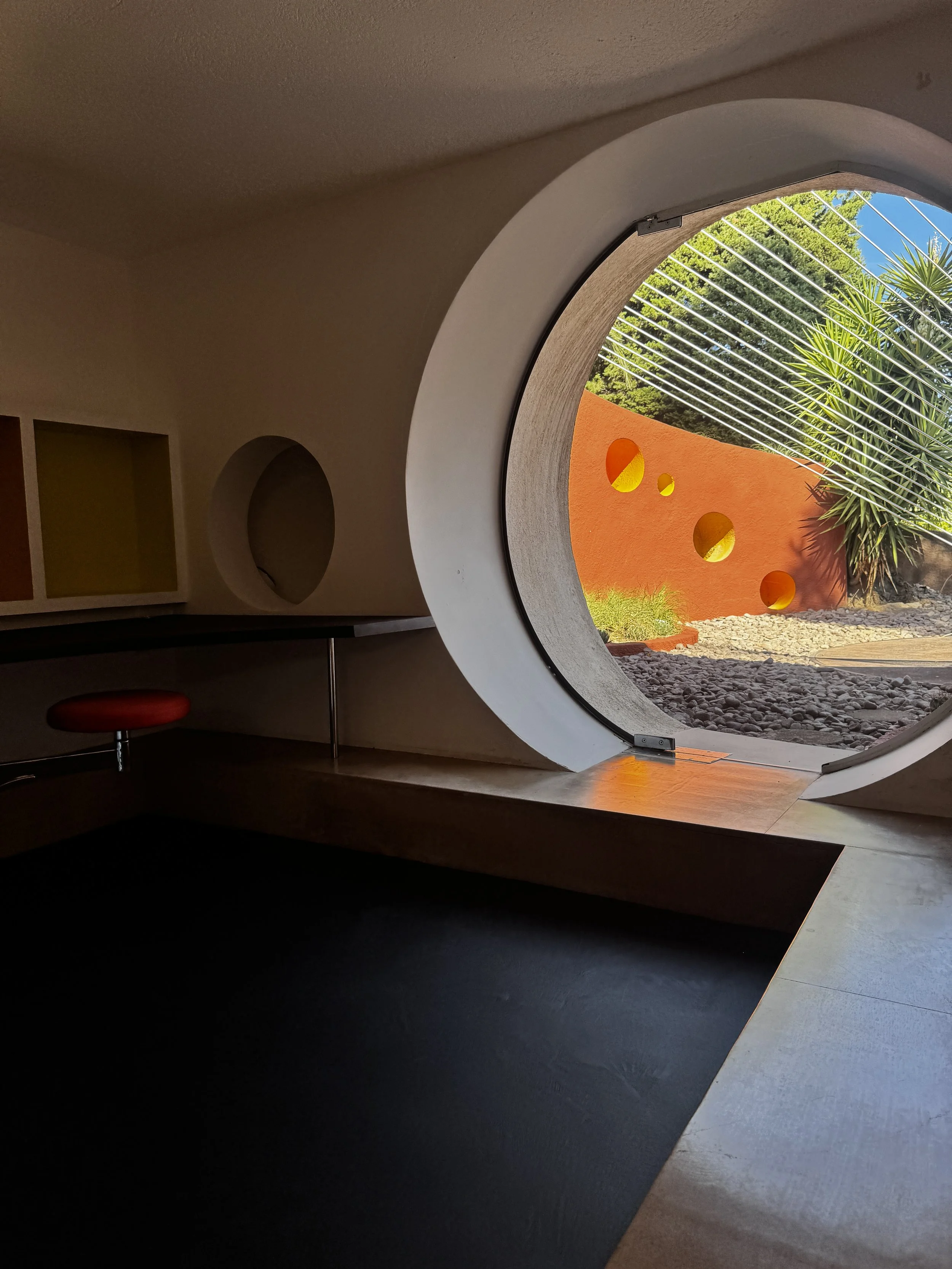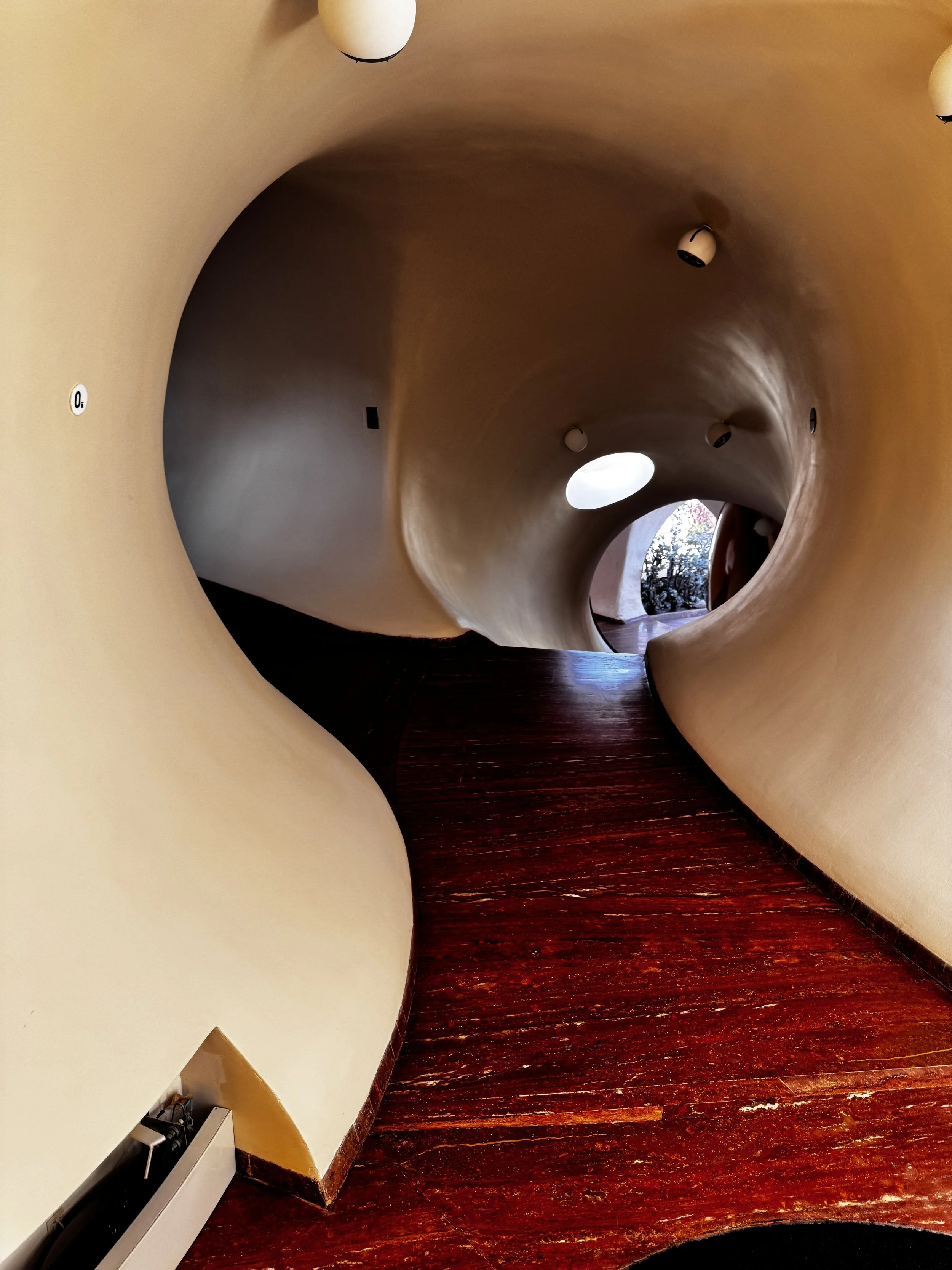 Designed in the late 1960s and 70s by Antti Lovag, the house reflects Lovag’s belief that straight lines were an error of modernity. Here, walls swell instead of stand, ceilings dome instead of hover, and rooms unfold like living organisms. Architecture is not imposed on the body; it accommodates it.