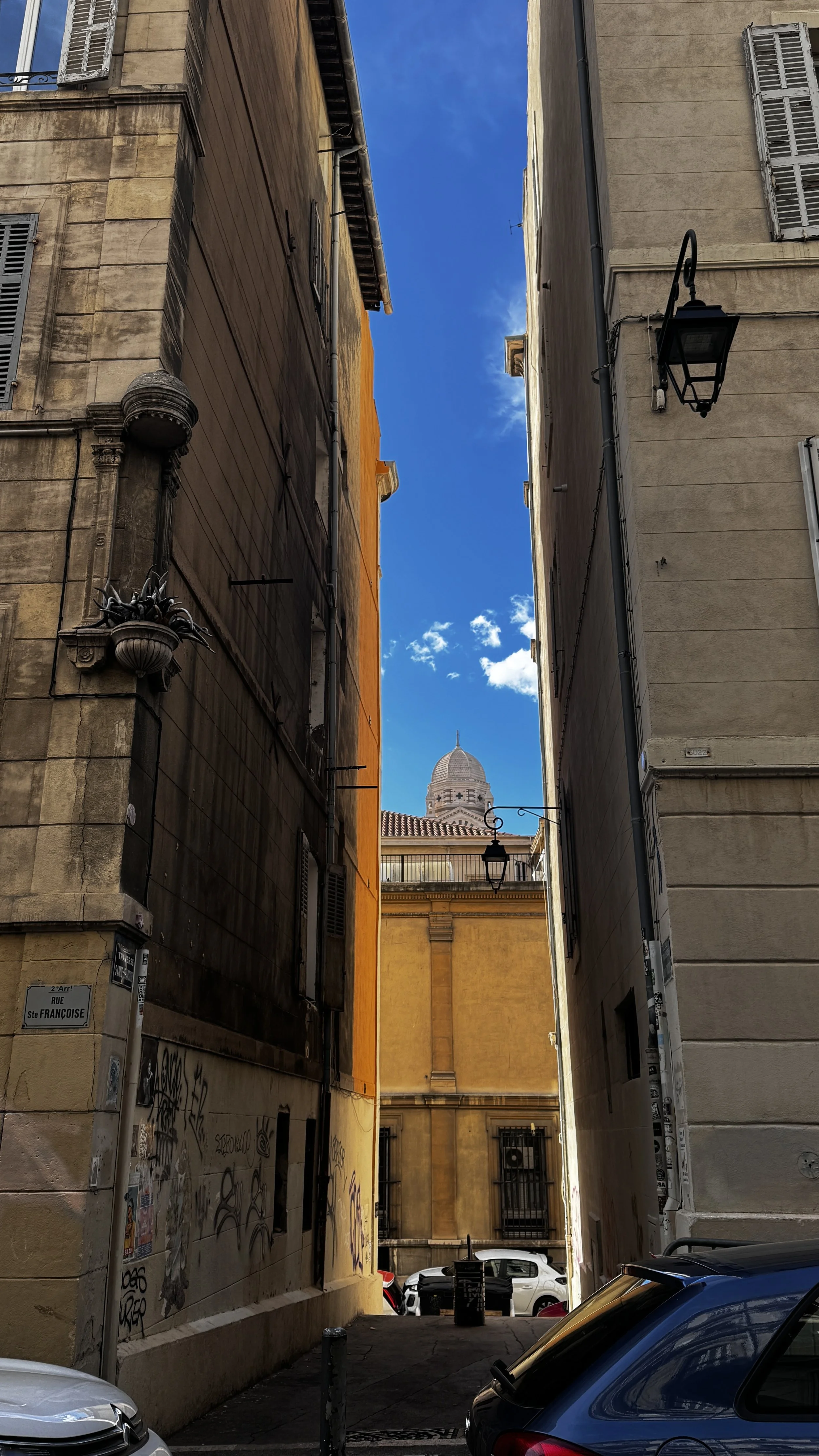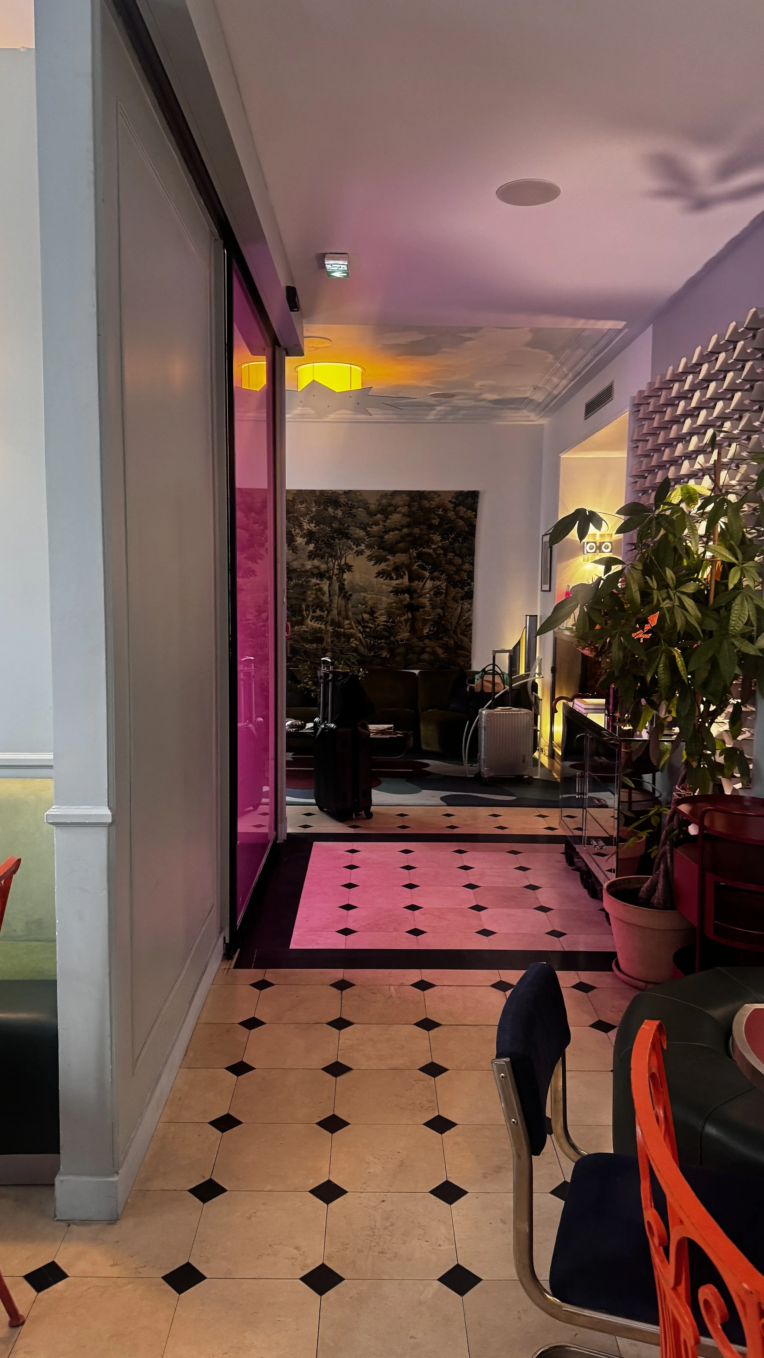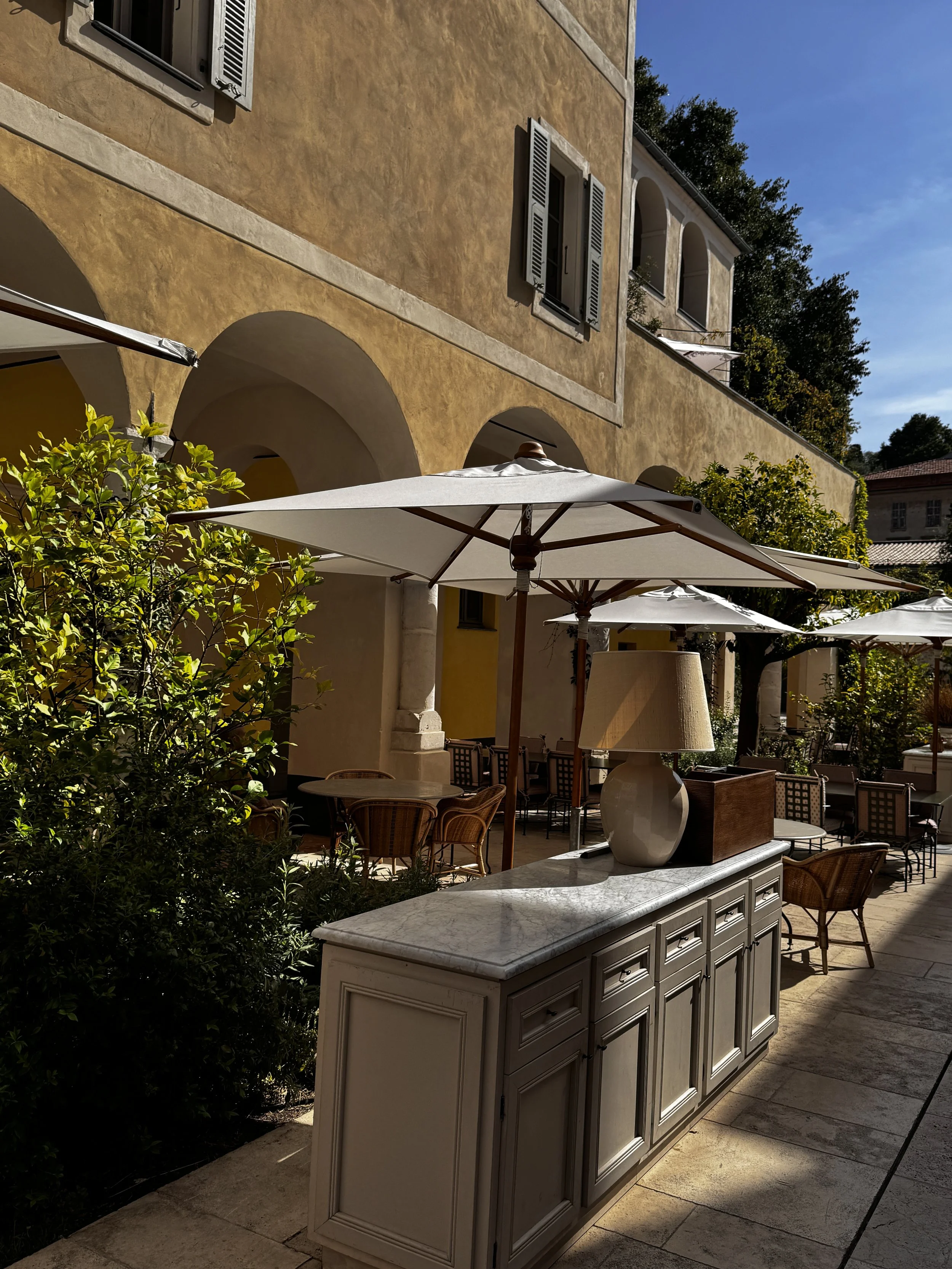 Perched quietly above Vieux-Nice, the hotel feels woven into the fabric of the old city rather than placed upon it. Step outside and you’re dropped straight into a tangle of narrow, timeworn streets designed long before cars were ever imagined. Laundry flutters overhead, sun-washed shutters soften into pastel tones, and the whole scene unfolds with a slightly theatrical ease. It’s intimate, characterful, and unapologetically unpolished — the kind of setting that feels not curated, but real.